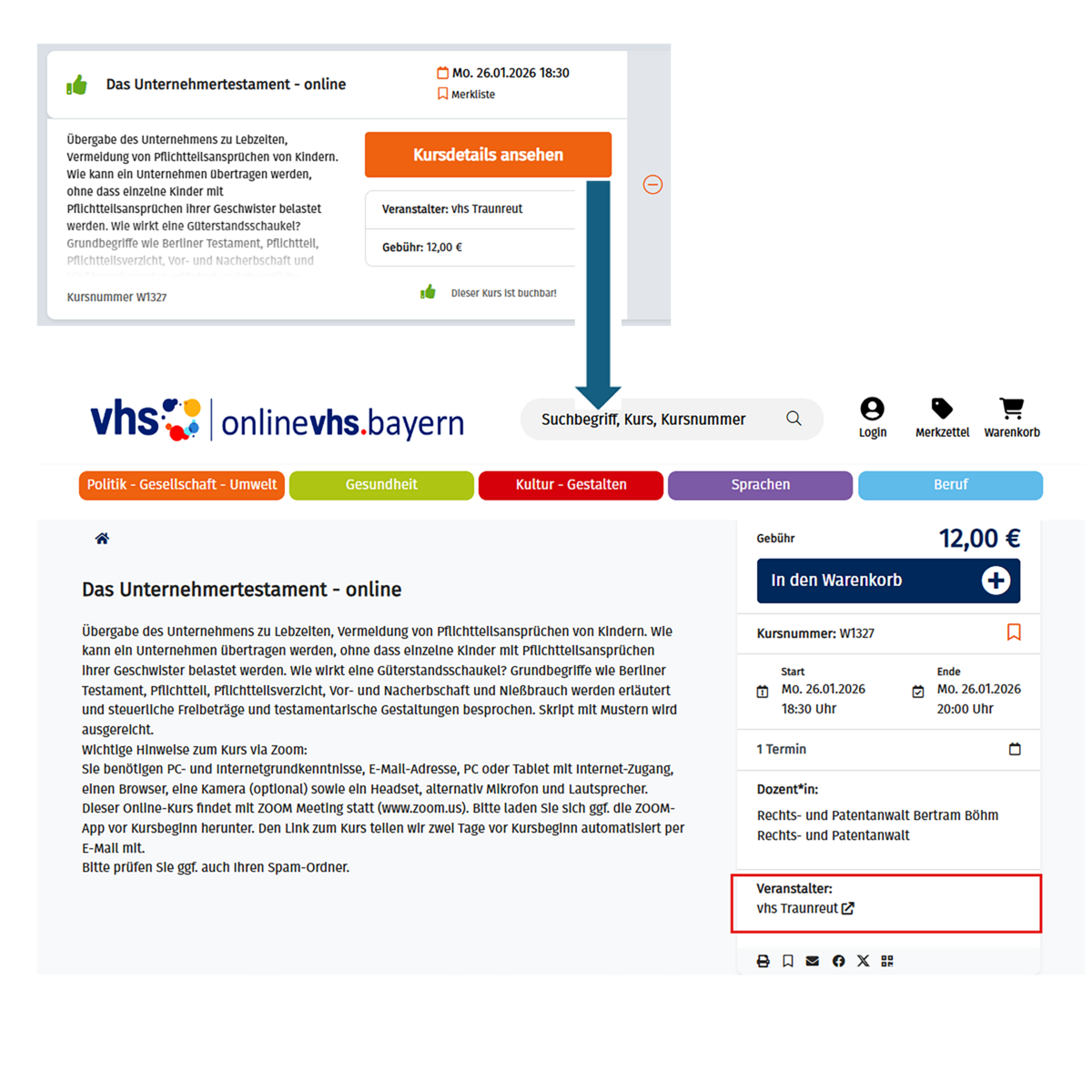 Den Link zur anbietenden vhs findest du in der Kurs-Beschreibung.